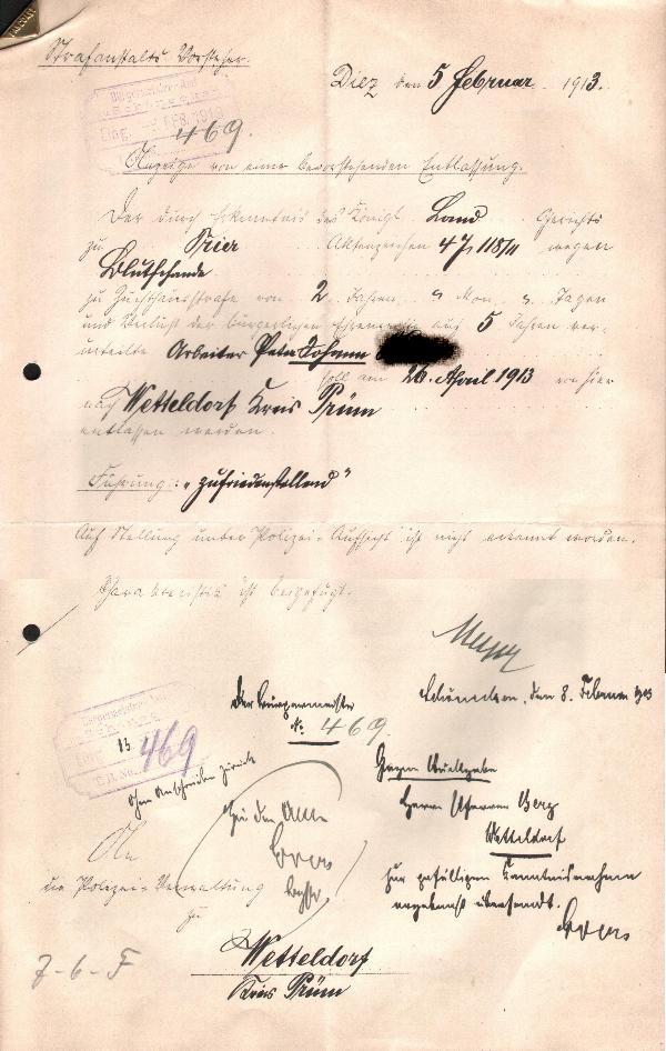 1913 - Entlassung aus dem Zuchthaus Diez am 5. Februar 1913.