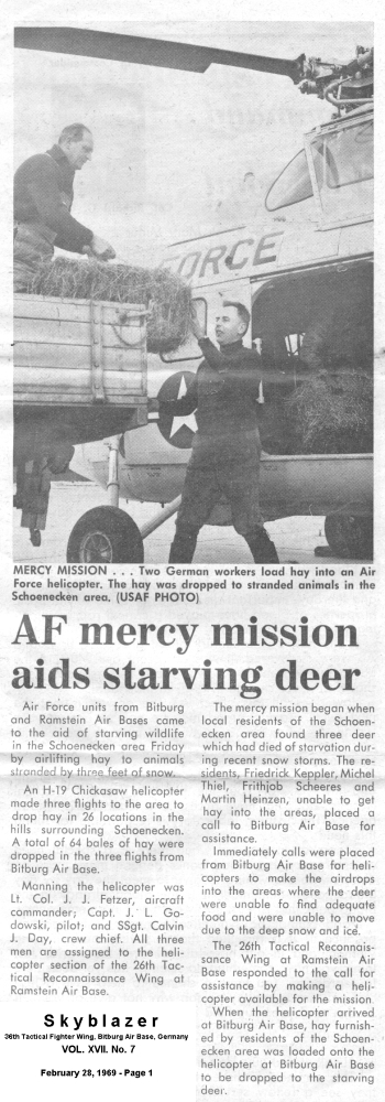 so lautet die Überschrift des Artikels im *Skyblazer vom 28. Februar 1969. Luftwaffeneinheiten aus Bitburg und Ramstein Air Base starteten im