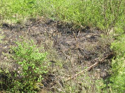 durch eine weggeworfene Zigarette wurden Gebüsch und Unterholz beim Schloßpfad unter der