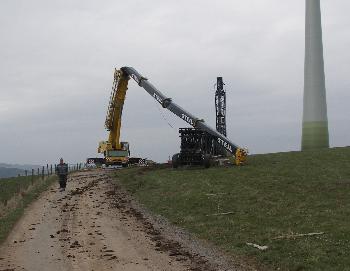 Arbeitsunfall - 2 Schwerverletzte durch Abbau eines Gittermastautokrans beim Windpark