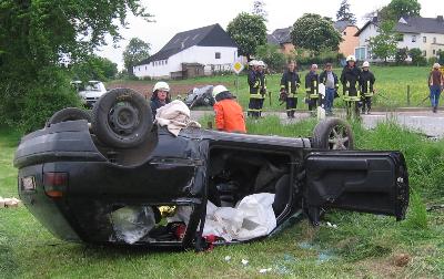 Wiese. Ein Beifahrer wurde schwer verletzt und im Fahrzeug eingeklemmt und musste durch