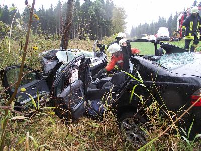 gegen einen Baum. Die 43-jährige Beifahrerin aus Ostbelgien wurde eingeklemmt und musste