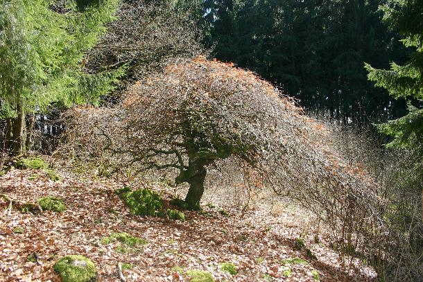 | Die seltsam anmutende Form der Rotbuche mit Drehwuchs, Krüppelwuchs,