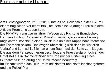 | September 2010 / Polizeibericht der PI Prüm: | ||||||