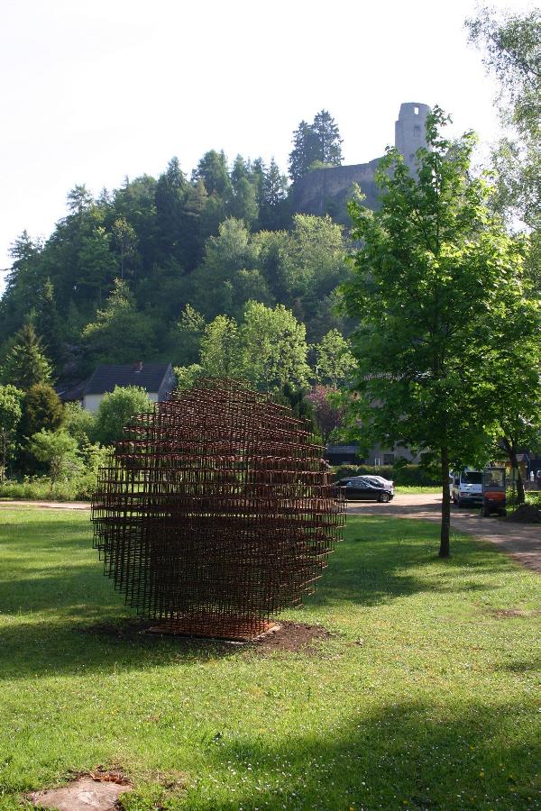 Die aus Stahlmatten gefertigte Kugelplastik "STILLE" von