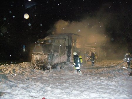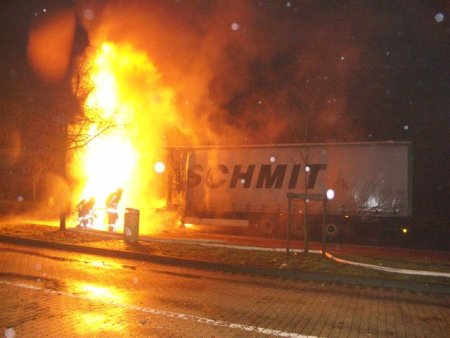 Die Sattelzugmaschine brannte vollkommen aus. Die Ladung bestand aus