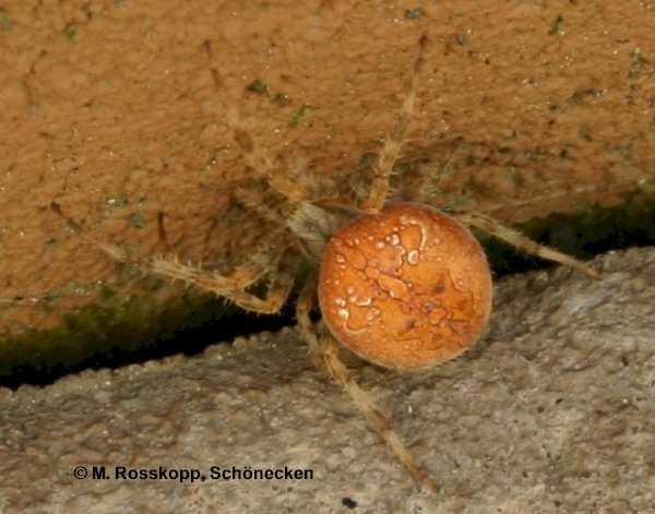 etwa vergleichbar mit dem Stich einer Wespe. Für Nicht-Allergiker also nicht bedrohlich oder gar lebensgefährlich. Die marmorierte Kreuzspinne lebt gerne in Büschen und Kräutern. Sie versteckt sich in einem gut getarnten Schlupfwinkel in der Nähe ihres Netzes, in dem sie auch große Insekten fangen kann. |