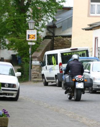 Haus Arenth und in der Nähe des Geschwindigkeitswarngerätes, macht sich