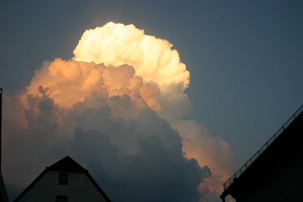 Eine schöne Riesenwolke über dem sommerlichen Abendhimmel von Schönecken. Überbleibsel eines Gewitters, das an einem anderen Ort niederging.