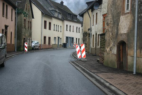 Momentan kommt es zu kleineren Nachbesserungen des Bürgersteigs, nachdem dies von den Anwohnern wegen Sicherheitsbedenken und zum Schutz der Fußgänger eingefordert wurde. Behörden und Gemeinde kamen den Wünschen der Anwohner entgegen, an einigen Engstellen werden Poller in den Bürgersteig eingebaut. An der Einfahrt zur Vollbach (unteres Bild) wird außerdem der Bürgersteig etwas verbreitert, damit er barrierenfrei von Rollstuhlfahrern überwunden werden kann.