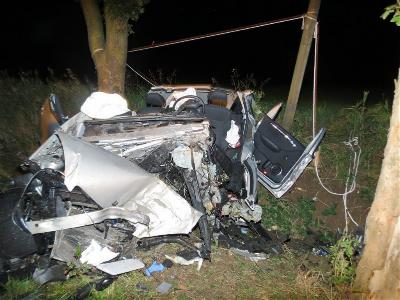 einen neben der Fahrbahn stehenden Baum. Der Fahrzeugführer wird in