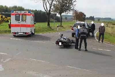 Am Montagmorgen, den 09.10.2017 gegen 07:00 Uhr kam es auf der L 5 zwischen den Ortschaften Schönecken und Nimsreuland in Höhe Schweißthaler Mühle zu einem Zusammenstoß zwischen einem 16-jährigen Kradfahrer und einem PKW. Der 56- jährige PKW-Fahrer aus der VG Arzfeld befuhr die K 122 aus Richtung Heisdorf kommend und biegt nach links auf die L 5 ab. Hierbei übersieht er den aus Richtung Schönecken kommenden bevorrechtigten Kradfahrer. Es kommt zum Zusammenstoß der Fahrzeuge. Der Kradfahrer wird schwer verletzt ins Krankenhaus Bitburg eingeliefert. Im Einsatz waren das DRK, ein Notarztwagen und die Feuerwehr aus Schönecken. |