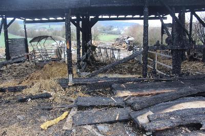 Eigentümern gerettet werden. Der Stall brannte völlig aus. Die