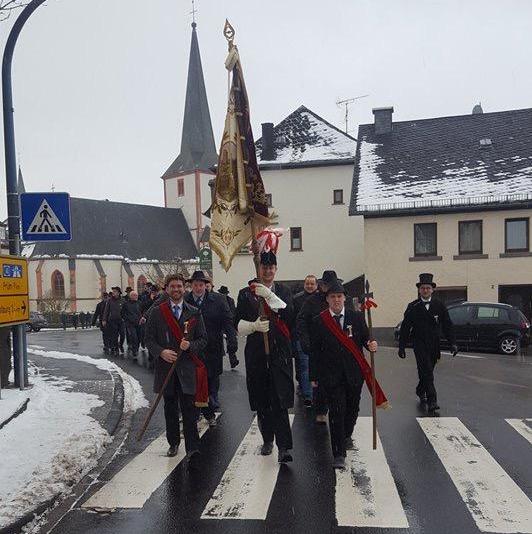 Nach dem von Pastor May erteilten Blasiussegen, ist das Zalditschen auf dem Rückweg zum Vereinslokal. Foto: Junggesellensodalität Schonecken.
