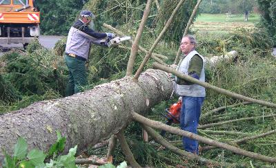 soweit: Eine der kapitalen Fichten auf dem Parkplatz am Alten Amt wurde gefällt. |