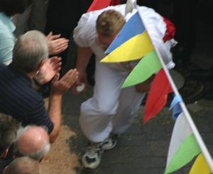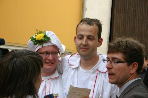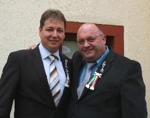 Sieger der Eierlage 2009 Roman Schütz und Läufer Christian Jakobs. |