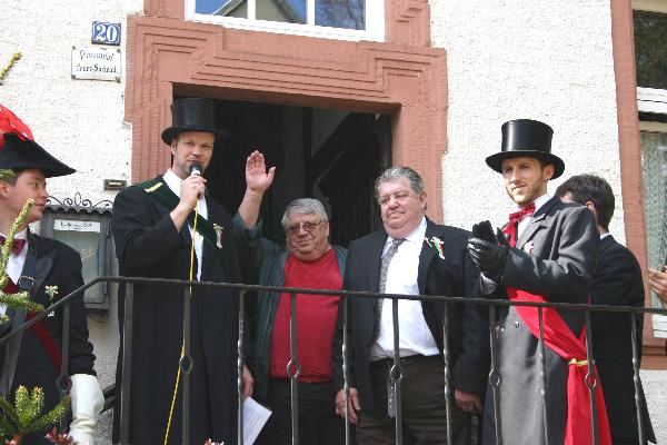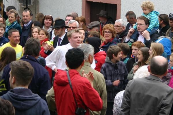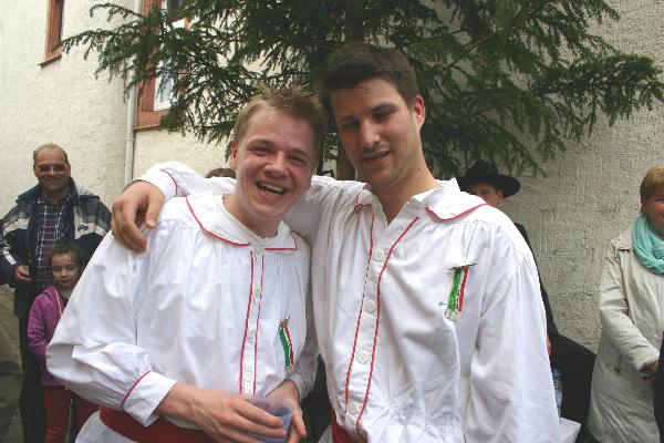 folgt die Siegerehrung, bei der die Junggesellen den Sieger der Eierlage hochleben lassen.
