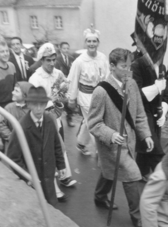 die Sodalität mit Raffer und Läufer vom Vereinslokal in die Kirche. Um die Mittagszeit