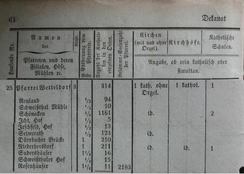 Trier - Auszug aus dem Dekanat Prüm von 1847 zur Pfarrei Wetteldorf |