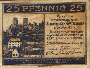 mit Motiv "Burgruine Schönecken" auf der Rückseite, 25 Pfg. von 1920. |