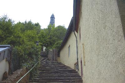 steilsten Aufstiege zur Schönecker Burgruine. Ungeübte werden hier zwischendurch