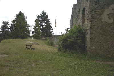 Weg zur Burgruine. Rechterhand auf dem Bild befindet sich ein ortsuntypisches