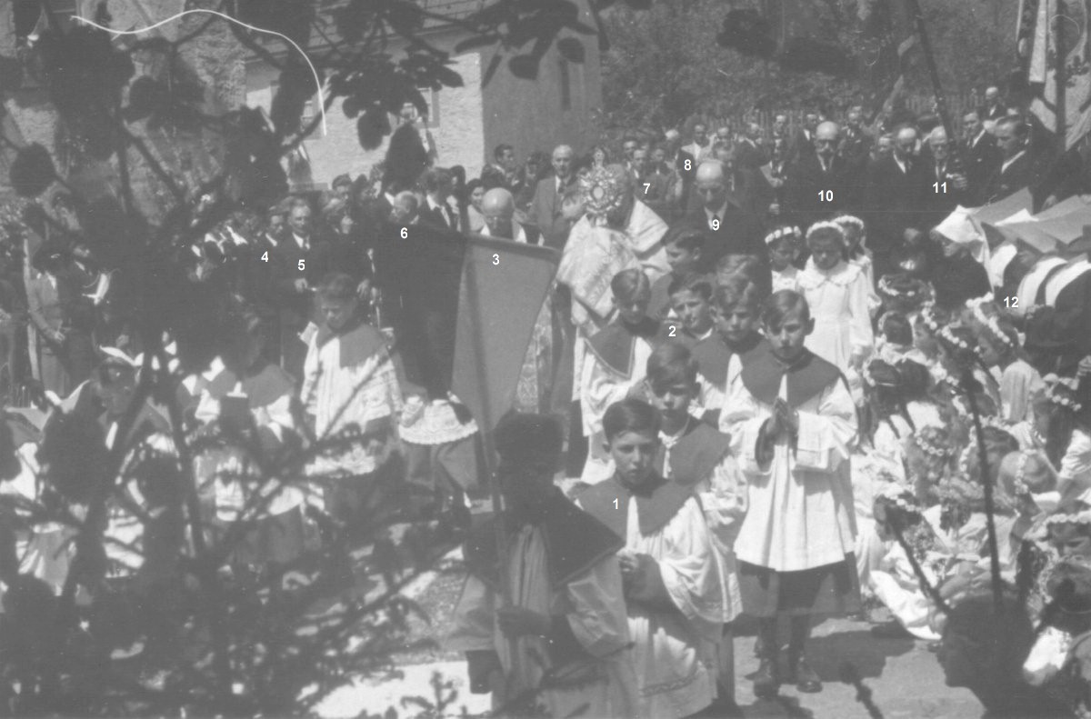 Servatius Breuer (5), Dirigent Dechange (6), Fritz Kammerschen (7), Johann