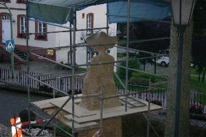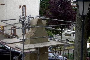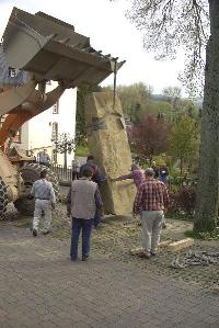 Am Mittwoch, dem 28.04.2004 wurde ein 5 Tonnen schwerer gelber Sandstein angeliefert, aus