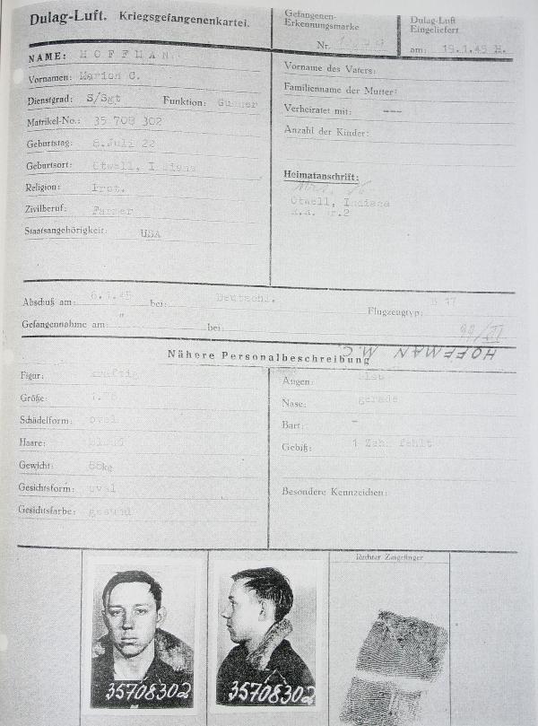Erlebnisberichtes des Bordheckschützen Feldwebel Marion C. Hoffman, der heute 87 jährig