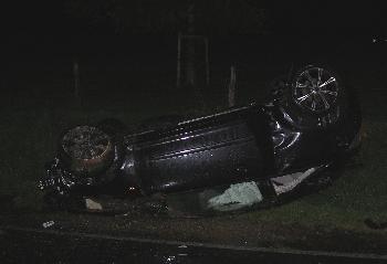 wurde der PKW hoch geschleudert und überschlug sich im linken Graben. Anschließend