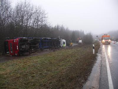 Güterkraftverkehrs im Dezember 2008: Im Monat Dezember wurden durch Beamte der Polizeiinspektion Prüm Kontrollen des gewerblichen Güterkraftverkehrs durchgeführt. Neben der Einhaltung der Lenk- und Ruhezeiten standen die Überwachung der zulässigen Höchstgeschwindigkeit sowie der Ladungssicherung im Vordergrund. Es wurden insgesamt 133 Lastkraftwagen (59 x deutsch, 73 x EG-Staaten, 1 x Nicht-EG) überprüft. Insgesamt waren 18 Fahrzeuge und 74 Fahrzeugführer zu beanstanden. Bei den deutschen Fahrzeugführern betrug die Beanstandungsquote 52 %, bei den ausländischen Kraftfahrern gar 57 %. Das Gros der Beanstandungen bezog sich auf Geschwindigkeitsüberschreitungen (53 Fälle). In 17 Fällen waren Beanstandungen der Ladung bzw. deren Sicherung zu verzeichnen, so dass in 13 Fällen die Weiterfahrt vorübergehend zu untersagen war. Es wurden 14 Verfahren wegen einer Ordnungswidrigkeit eingeleitet und 68 Verwarnungen ausgesprochen. In 2 Fällen ergaben sich Anhaltspunkte für einen Verstoß gegen steuerrechtliche Bestimmungen; die zuständigen Finanzämter werden entsprechend informiert. Im Rahmen der Kontrollen wurden bei überprüften Holztransportern erhebliche Überladungen festgestellt: Bei dem Lastzug eines belgischen Unternehmers wurde ein Gesamtgewicht von 64 Tonnen festgestellt; einen Tag später wurde das gleiche Fahrzeug nochmals überprüft. Diesmal wurden 60 Tonnen Gesamtgewicht festgestellt. Ein weiterer Lastzug aus Belgien hatte ein Gesamtgewicht von 54 Tonnen auf die Waage gebracht. Mit vergleichsweise geringer Ladung war ein deutscher Fahrer unterwegs; sein Lastzug wog "nur" 50 Tonnen. Den Vogel schoss dagegen der belgische Fahrer eines Unternehmens aus Luxemburg ab. Der Lastzug brachte satte 70 Tonnen auf die Waage, was eine Überschreitung des zulässigen Gesamtgewichts um 30 Tonnen ergibt. |