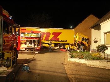DRK Prüm in ein Krankenhaus eigeliefert. Der 50-jährige Fahrer des Sattelzuges wurde