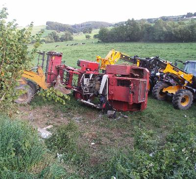 er in einer Rechtskurve frontal mit einer entgegen kommenden landwirtschaftl. Zugmaschine