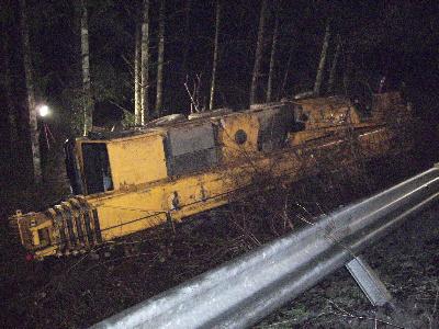 des Kranfahrzeuges wurde durch das DRK mit leichten Verletzungen ins Krankenhaus Prüm