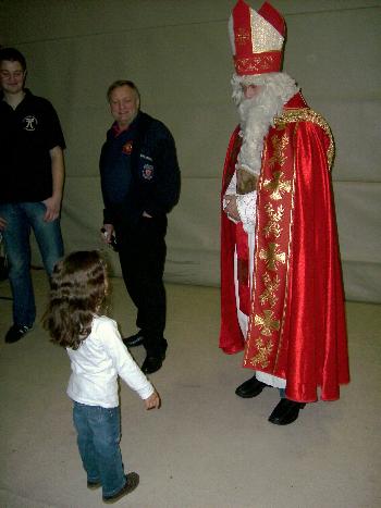 heißersehnte Besuch des Nikolauses, der ein paar Weihnachtslieder mit den Senioren sang