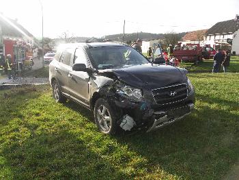 Verkehrsunfall bei dem eine Person leicht verletzt wurde. Ein Pkw-Fahrer hatte die L 16