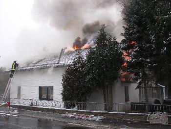 in kurzer Zeit der Dachstuhl und später das gesamte Haus in Flammen standen. Der