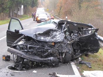 schweren Verkehrsunfall im Bereich Schweißthal an der Landesstraße 5. Zwei