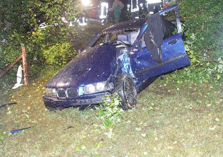 einen Baum und gelangte auf einer angrenzenden Wiese total beschädigt zum Stillstand. Die