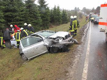 Pkw prallt gegen Baum 06.03.2010: Glätte-Unfall: