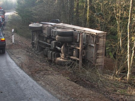 aufgeweichte Bankette ab. Hierbei geriet der beladene LKW im