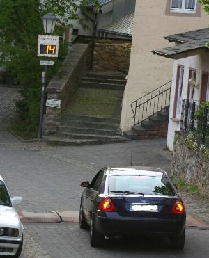 Haus Arenth und in der Nähe des Geschwindigkeitswarngerätes, macht sich