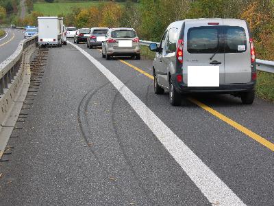 bei Niederprüm Am Samstag, den 14.10. 17, gegen 12:10 Uhr kam es auf der L11, zwischen der B51 (Kreisverkehr) in Fahrtrichtung B410, hinter der Autobahnmeisterei zu einer Gefährdung des Straßenverkehrs. In einer lang gezogenen Rechtskurve geriet der Fahrer eines Pkws, Marke BMW, nach links auf die Gegenfahrbahn. Hierbei musste ein entgegenkommender brauner Pkw ausweichen. Dieser kam nach rechts von der Fahrbahn ab und fuhr in die angrenzende Wiese. Ein Zeuge meldete den Sachverhalt der hiesigen Dienststelle. Noch vor Eintreffen der Polizei hatte sich der unbekannte, braune Pkw jedoch von der Örtlichkeit entfernt. Der Fahrer des beteiligten braunen Fahrzeugs sowie weitere Zeugen werden gebeten, Hinweise der Polizeiinspektion Prüm unter 06551-9480 zu melden. |