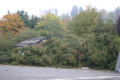 soweit: Eine der kapitalen Fichten auf dem Parkplatz am Alten Amt wurde gefällt. |