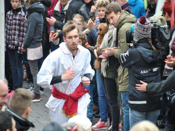 Junggesellen halten in dieser Zeit dem Raffer eine Gasse frei, damit er die Eier aufraffen