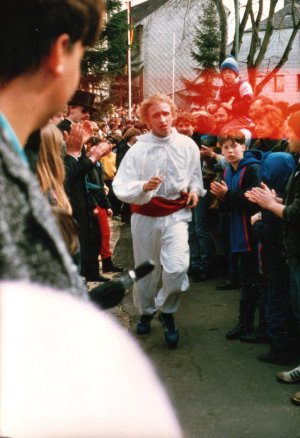aus wieder zu sehen ist, verkündet ein Böllerschuss das Herannahen des Wettkämpfers. Je