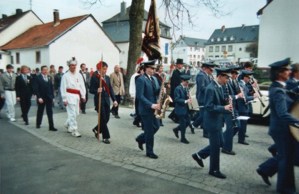 Sodalität noch einmal mit Musikbegleitung durch den alten Ortskern. Der Wettkampf beginnt