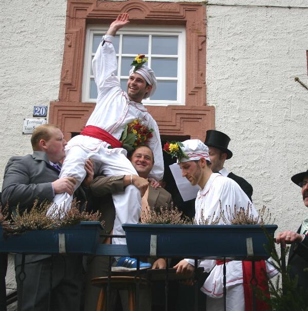 folgt die Siegerehrung, bei der die Junggesellen den Sieger der Eierlage hochleben lassen.