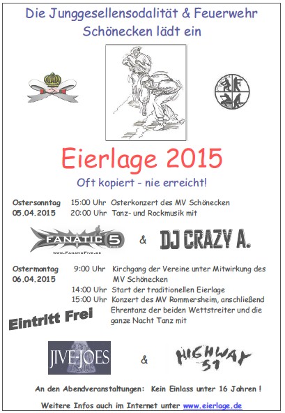 Beratungen des Vorstands wurde die Eierlage 2015 heute an Christian Gitzen und Christian Rabe vergeben.