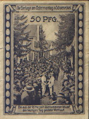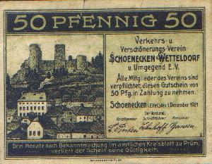 mit Motiv "Burgruine Schönecken" auf der Rückseite, 25 Pfg. von 1920. |